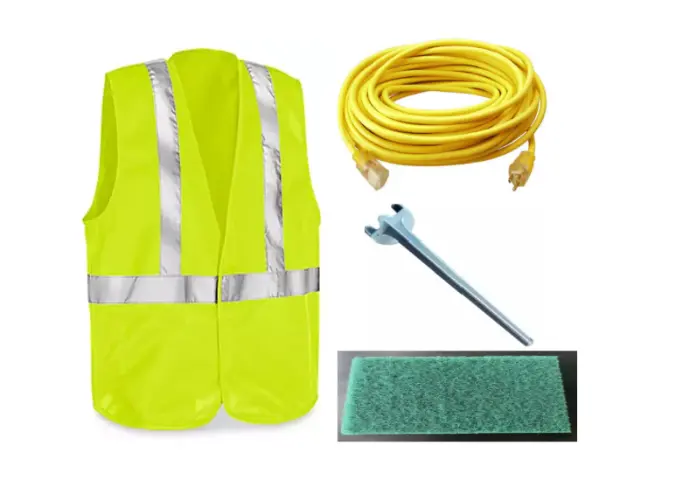 PPE, extension cords, abrasives, and general site supplies.